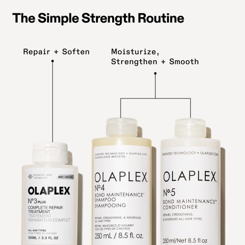 Transformez les cheveux abîmés en seulement 3 minutes avant le shampooing avec N°.3PLUS. Ce soin réparateur agit cliniquement pour des cheveux 3 fois plus forts et visiblement plus doux.