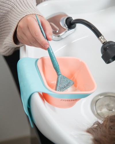 Le Framar Cookie Cutter Toning Tub rend le travail de toning plus simple, rapide et propre que jamais. Fini les allers-retours pendant l’application : le bol se fixe directement sur le bac à shampooing et garde la couleur à portée de main, dans une position idéale.